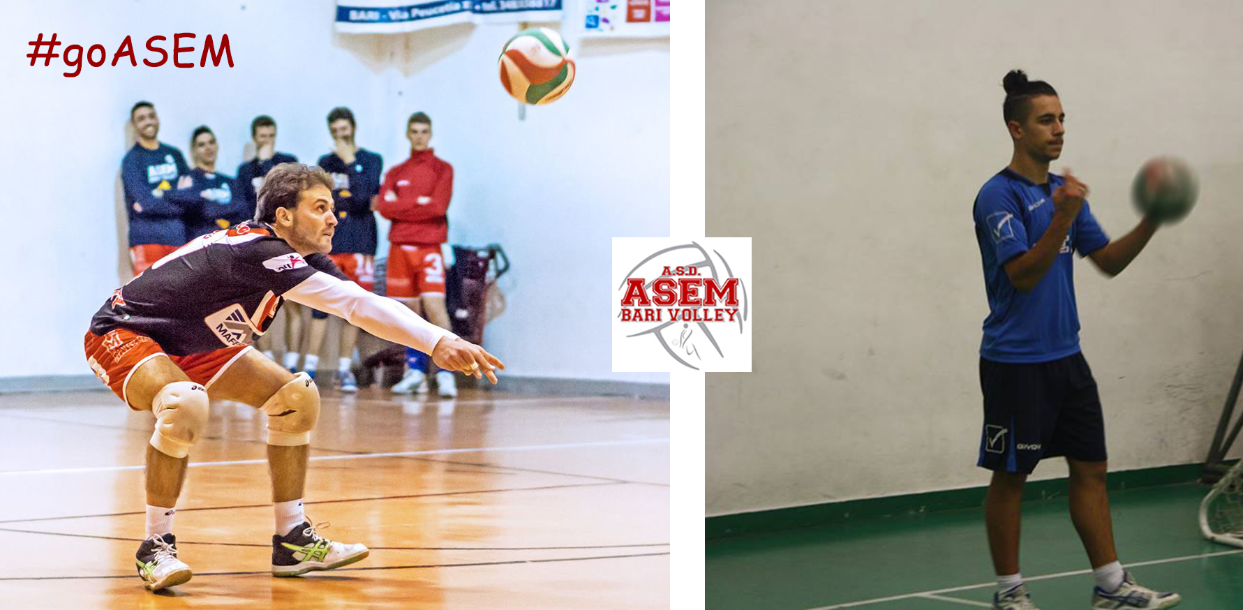 ASEM Bari Volley comunica con piacere la riconferma per la stagione 2015-2016 dell’atleta Alessandro Dammacco, libero classe 1988 alto 1.73 m e la promozione in prima squadra dell’atleta Miky Suarez, libero classe 1997 alto 1.73 m.