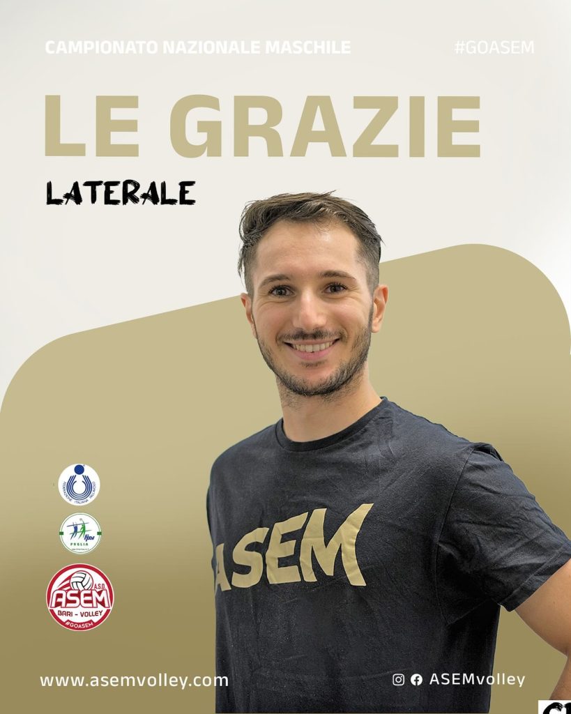 erie D maschile Francesco Le Grazie – Laterale CONFERMAAnche quest’anno Francesco Le Grazie indosserà la maglia ASEM!Siamo felici di poter contare sulla sua dedizione e sul suo spirito di squadra per affrontare le sfide di questo campionato “Servirà tanto duro lavoro, grandi sacrifici, fuori e dentro il campo, ed una squadra più unita che mai per affrontare questo nuovo anno, ma sono certo che con il gruppo che si è…