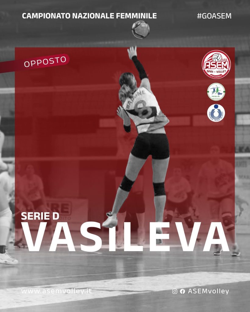 Melisa Vasileva – Opposto CONFERMANuova conferma nel roster della Serie D femminile!Dopo l’ottima stagione passata, anche quest’anno potremo contare su Melisa Vasileva nel reparto opposti ASEM Non vediamo l’ora di affrontare insieme un nuovo campionato ricco di sfide! “Dopo l’entusiasmante promozione quest’anno voglio mettermi in gioco, voglio crescere sportivamente e anche personalmente.Ho tanta fiducia nella Società e nella mia squadra, non vedo l’ora di cominciare questa nuova stagione!” auguriamo buona…