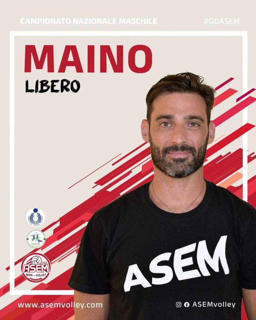 Serie D Maschile Francesco Maino – Libero RITORNOAsem Volley Bari è lieta di annunciare il ritorno di un’altro atleta di “Casa Asem”, il libero Francesco Maino. Francesco già protagonista di campionati di serie C e D con l’Asem ha deciso di sposare il nostro progetto tecnico. Queste le sue parole: “Ogni stagione è una nuova sfida. Come sempre non vedo l’ora di mettermi alla prova e dare il mio contributo…