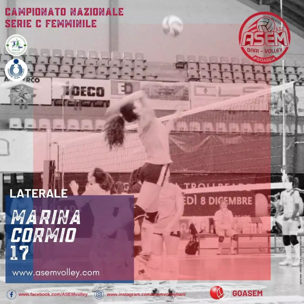 💣Marina Cormio confermata nel reparto schiacciatori ➡️Potenza, elevazione e grinta… quando si parla di attaccanti è impossibile non fare il suo nome! Dopo una straviliante stagione, terminata con una bellissima promozione, era certa la sua riconferma nel roster di serie C. Dopo un iter sportivo tra Bitonto, Primadonna e Adria, l’atleta bitontina arriva l’anno scorso in Asem iniziando un percorso che da li a poco le avremmo dato grandi soddisfazioni,…
