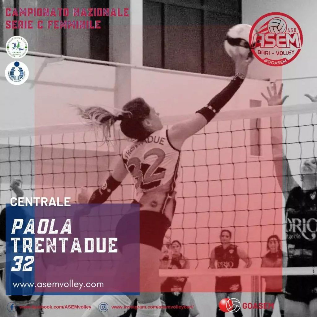 💣Paola Trentadue ormai una certezza nel reparto centrali ➡️Una giovanissima centrale, classe 2003, ma con un curriculum già di tutto rispetto. Cresciuta tra le fila del Modugno per poi passare a Monopoli e Altamura tra campionati giovanili e campionati regionali. Nel 2018 approda in casa Asem dove inizia il suo bellissimo cammino che la porta all’esordio in serie C, e ad indossare la fascia da capitano dell’under 19 conquistando un…