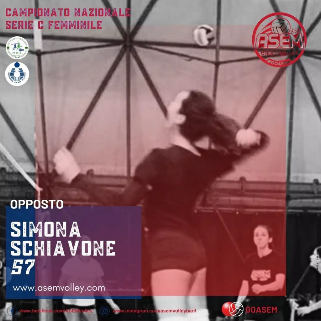 💣Simona Schiavone completa il reparto opposti ➡️La giovanissima atleta barese classe 2004, è ormai alla terza stagione consecutiva in serie C. Nata e cresciuta nel settore giovanile Asem, ha iniziato a muovere i suoi primi passi nella piccola “palestrina” vicino casa partecipando a tutti i campionati under fino ad arrivare alla tanto attesa convocazione in prima squadra. La società e tutto lo staff tecnico ha molta fiducia e crede molto…